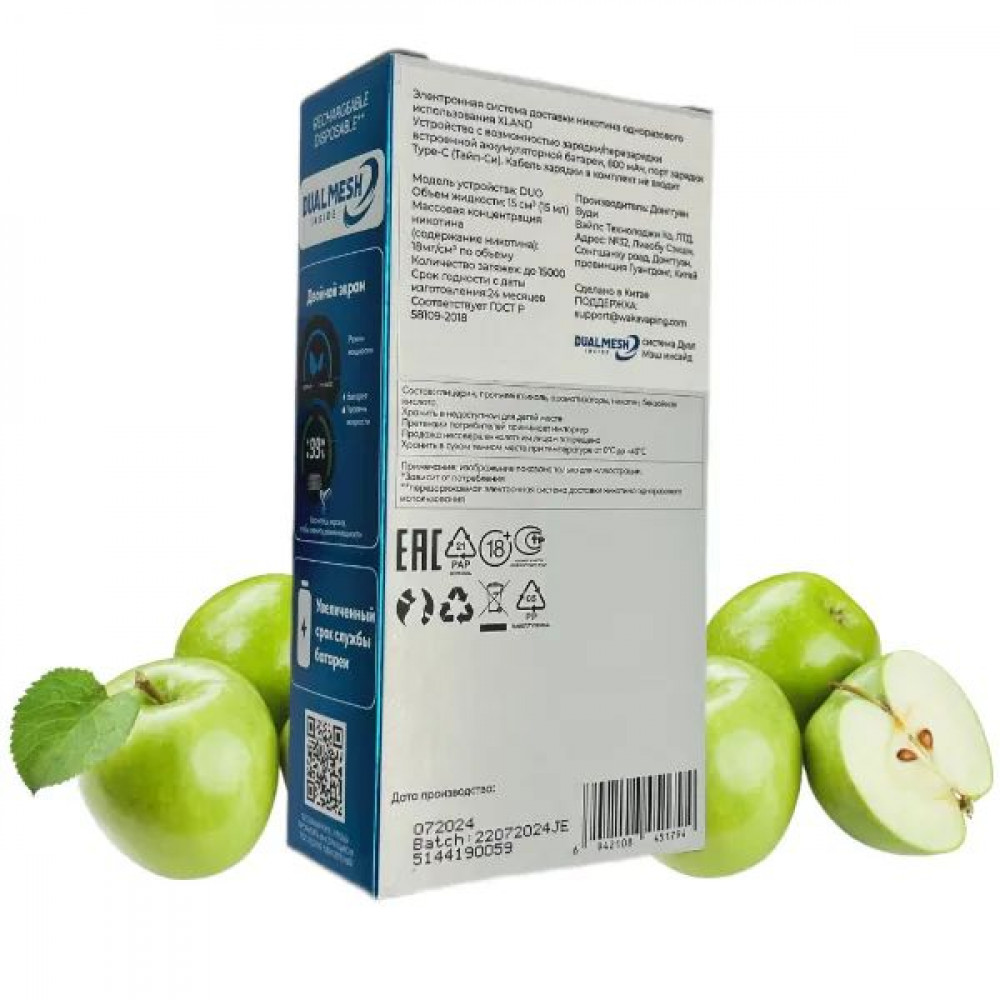 Технические характеристики WAKA XLAND 15000 - Кислое Яблоко