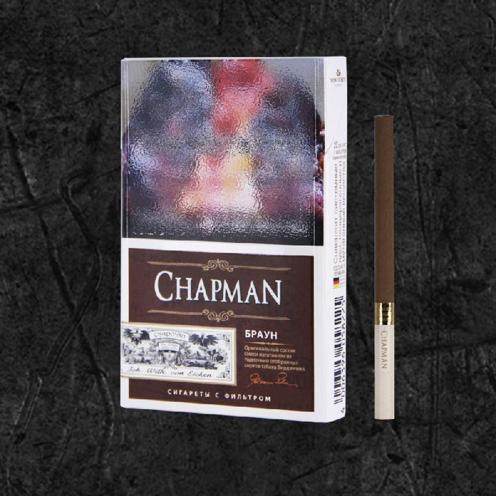 • Стильная упаковка: дизайн пачки сигарет Chapman выполнен в элегантной и минималистичной манере, идеально дополняющей образ современного человека.